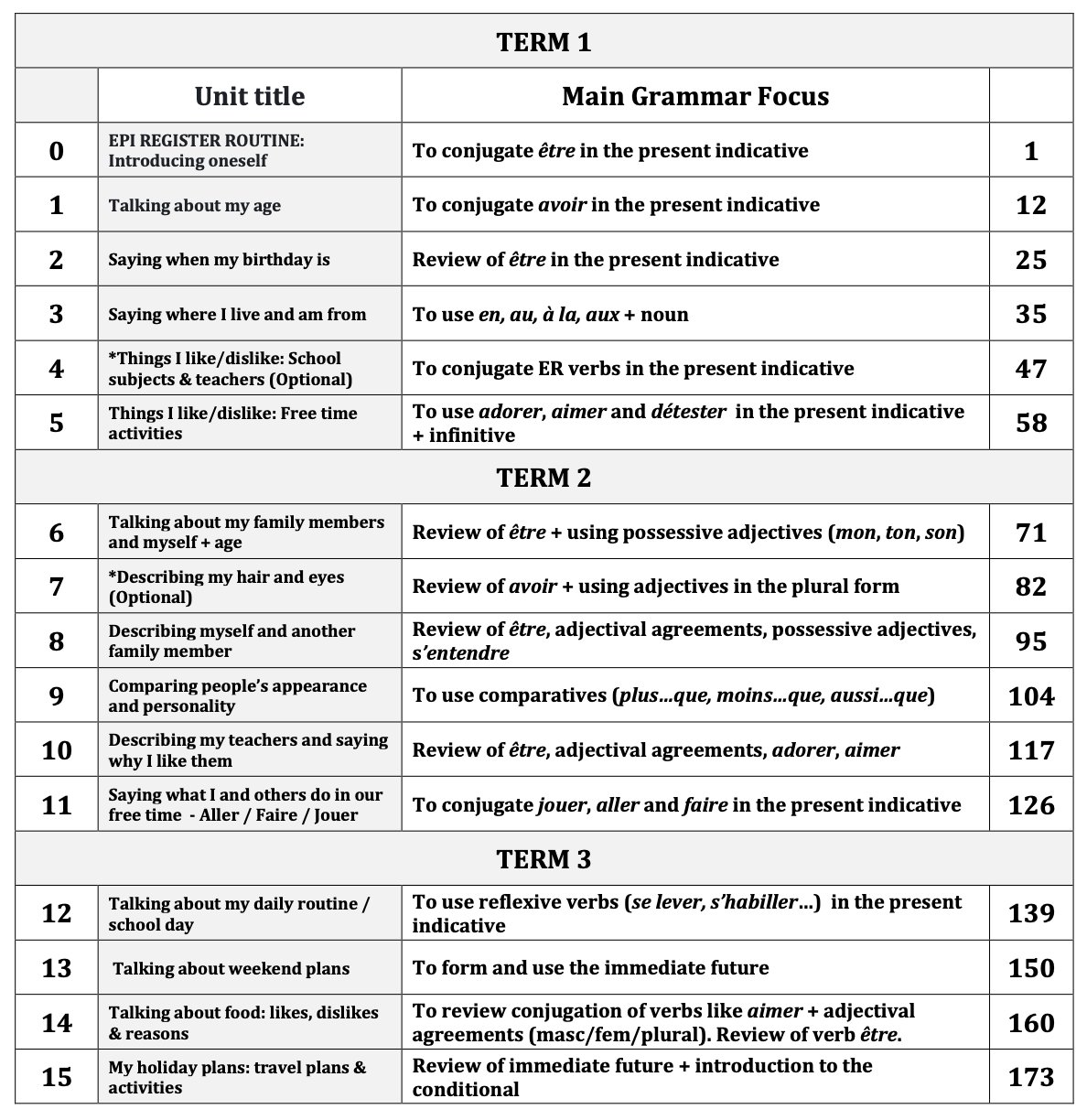 This book was conceived as a supplement to our French Sentence Builders: Trilogy – Part I book. It is divided into 14 units, with matching Sentence Builders from the main Trilogy book. Each of the units is based around one Main Grammar Focus, which is explained and then taught via an array of engaging Conti, EPI, vocab building, translation and writing tasks. There are also additional Pop-up Grammar sections to introduce and teach other grammatical points required throughout the book.
